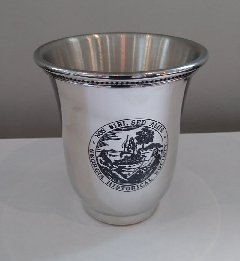 Salisbury’s Georgia Julep Cup in pewter represents one of the two major Southern design styles of the early 19th century. Patterned after the work of E.J. Johnston of Macon (c. 1851), the modified pear shape design is an early Southern favorite. The delicate beading on the Georgia Julep Cup reflects a sophistication of taste, typical of early Georgia. The cup is engraved with the Georgia Historical Society seal.